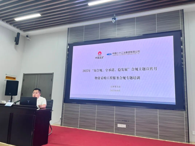 为强化全员合规意识,夯实企业合规管理基础,中国二十二冶以“知合规·守承诺·稳发展”为主题,全面启动2025年度合规宣传月活动,多维度、全方位推动合规文化深入人心,为企业高质量发展保驾护航。